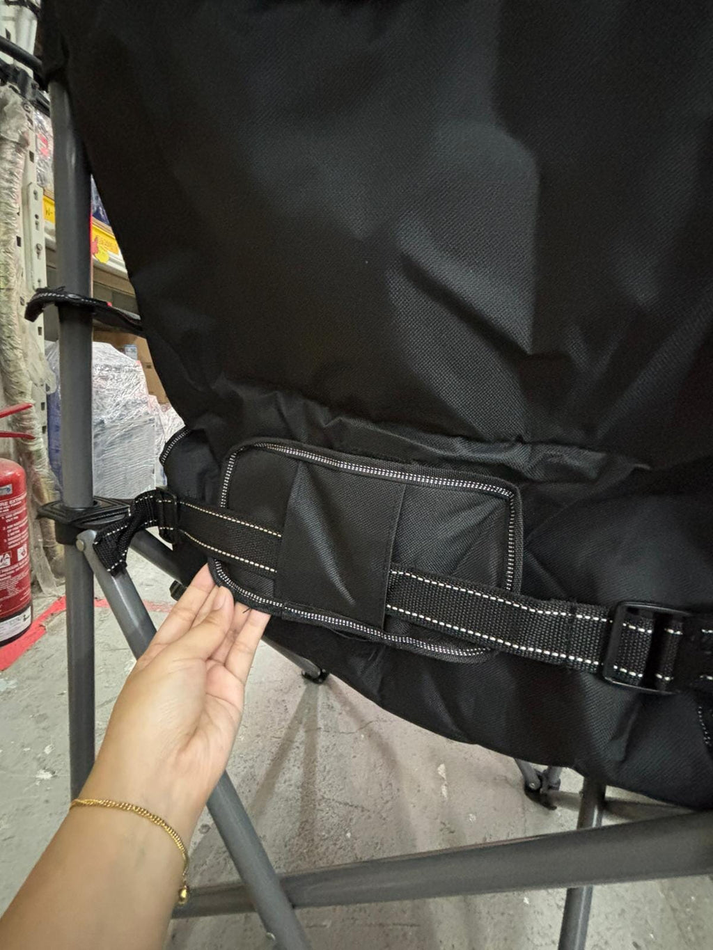 • Side storage pocket for phone or tools