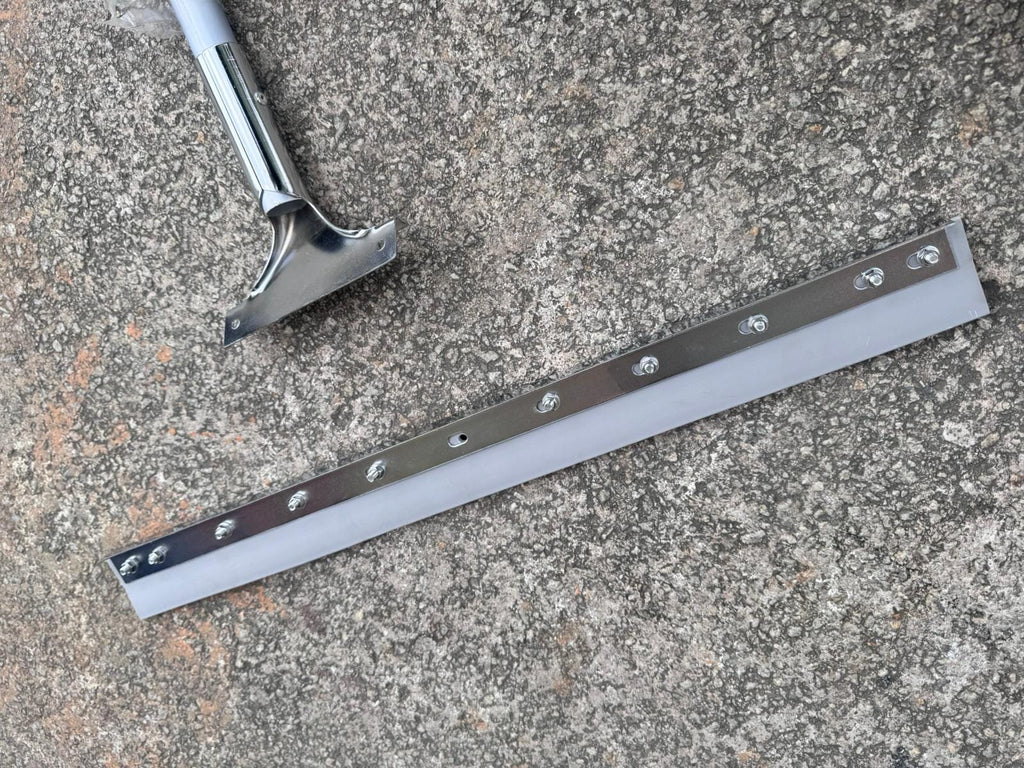 This straight rubber floor squeegee is designed for efficient water and liquid removal on flat surfaces. Commonly used in cleaning, maintenance, and worksite environments, it helps keep floors dry, clean, and safe after washing or spills.